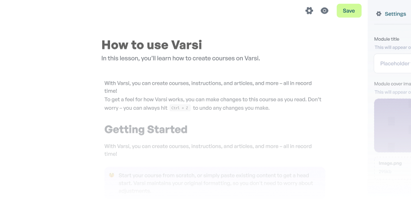 Varsi allows you to upload a variety of content, including documents, presentations, videos, images, and even quizzes.