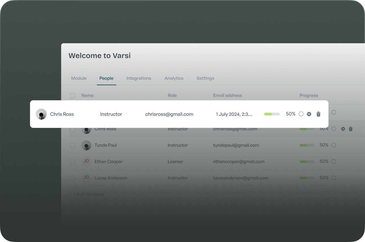 Track quiz scores, lesson views, and time spent to measure content effectiveness and identify where learners might be disengaging.