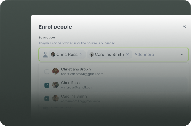 Assign a training to your entire team, or even the whole company, in just one click. No messy filters or manual setup needed.